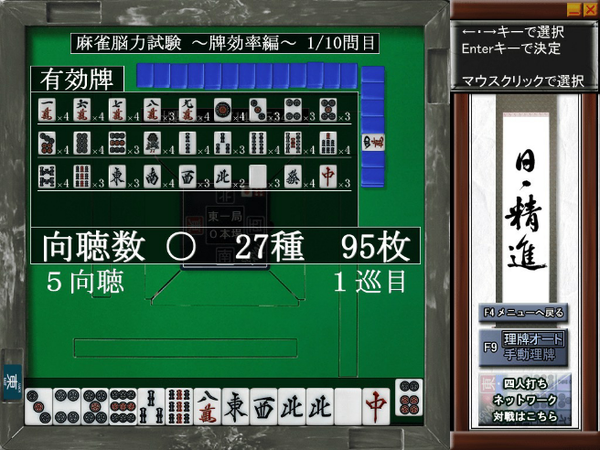 每次切牌之前都能看到向听数和向听张 是一个很好的锻炼软件